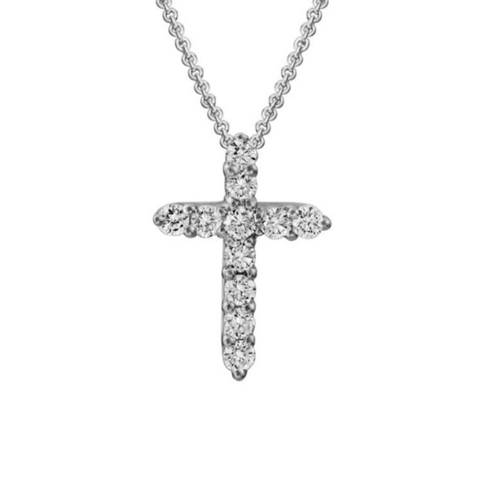 14 Karat White Gold Diamond Cross Pendant 0.26ctw