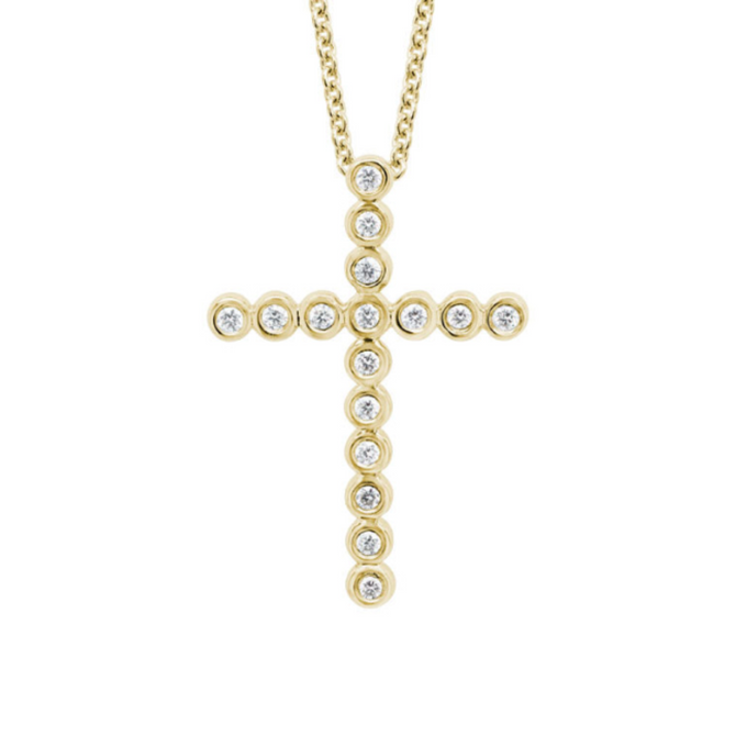 14 Karat Yellow Gold Bezel Set Diamond Cross Pendant