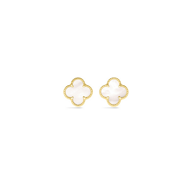 14 Karat Yellow Gold Italian White Mother of Pearl Quatrefoil Earrings