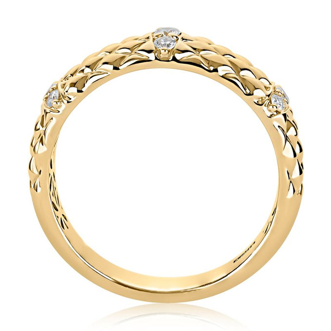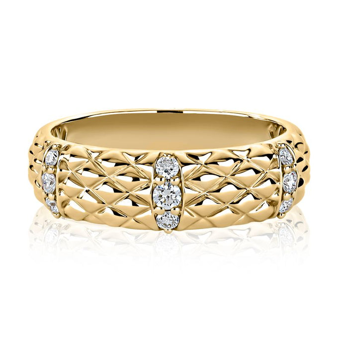14 Karat Yellow Gold Quilted Diamond Fashion Ring