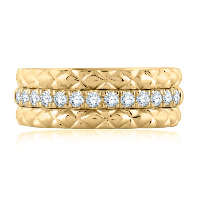 14 Karat Yellow Gold Quilted Diamond Row Fashion Ring