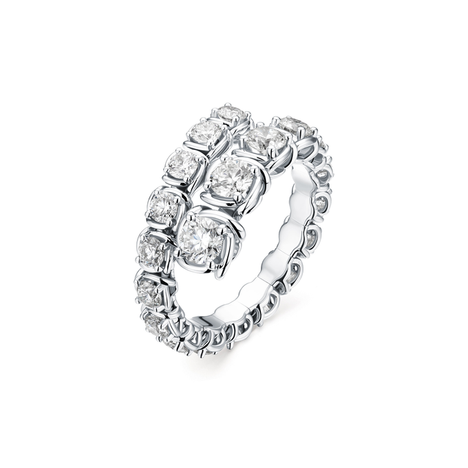 18 Karat White Gold Diamond Tennis Bypass Fashion Ring