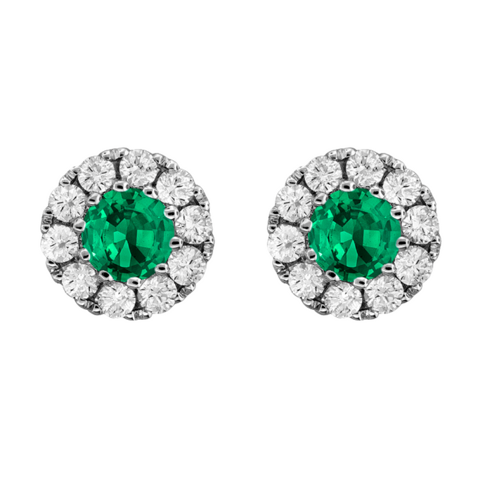 18 Karat White Gold Emerald/Diamond Halo Stud Earrings