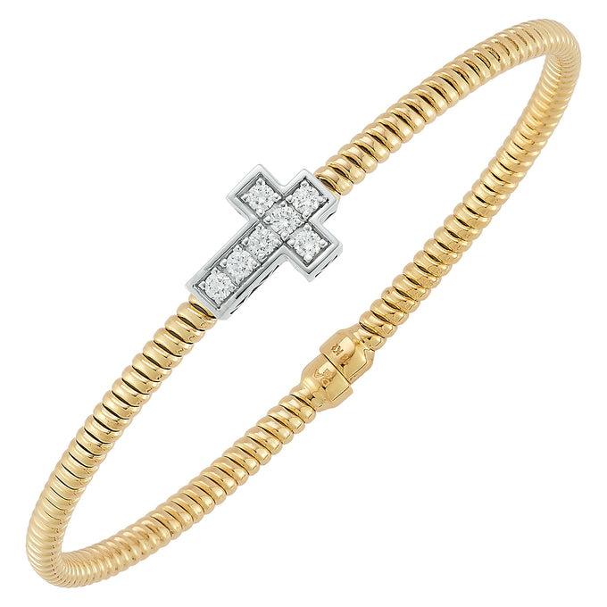 Lady's Yellow 18 Karat Diamond Sideways Cross Soft Cuff Bracelet 0.30ctw