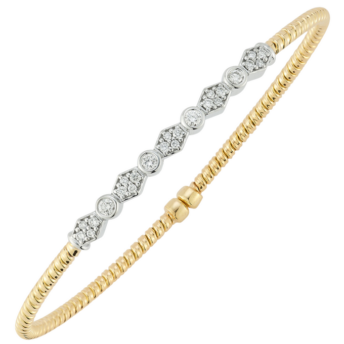 Lady's Yellow 18 Karat Diamond Multi Shape Bezel Soft Cuff Bracelet .40 cttw
