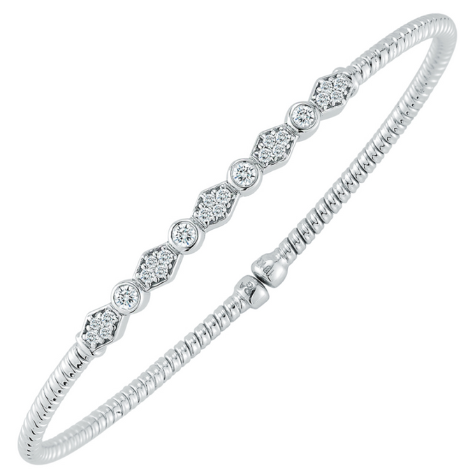 Lady's White 18 Karat Diamond Multi Shape Bezel Soft Cuff Bracelet 0.40 cttw