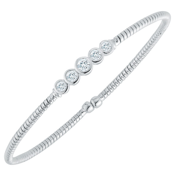 Lady's White 18 Karat Diamond 5-bezel Open Cuff Bracelet