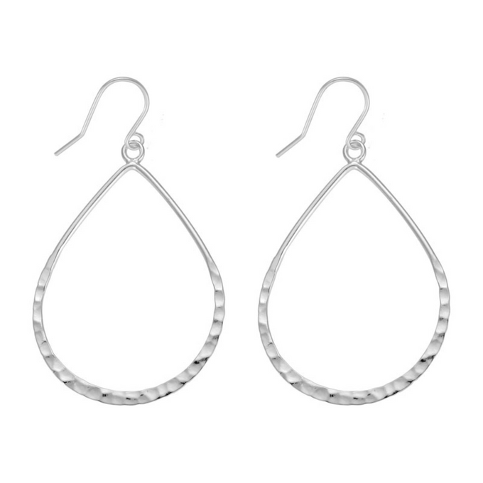 Hammered Tear Drop Sterling Silver Dangle Earrings