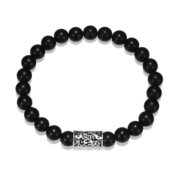 Sterling Silver Beaded 8mm Black Agate Bracelet