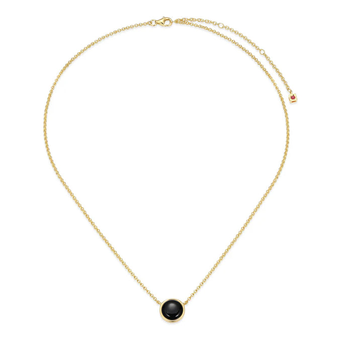 Sterling Silver Gold Plated Bezel Round Black Agate Necklace