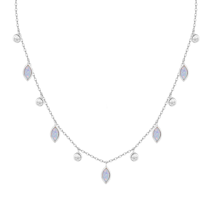 White Sterling Silver Rhodium Plated Lavender Opal Drops Necklace