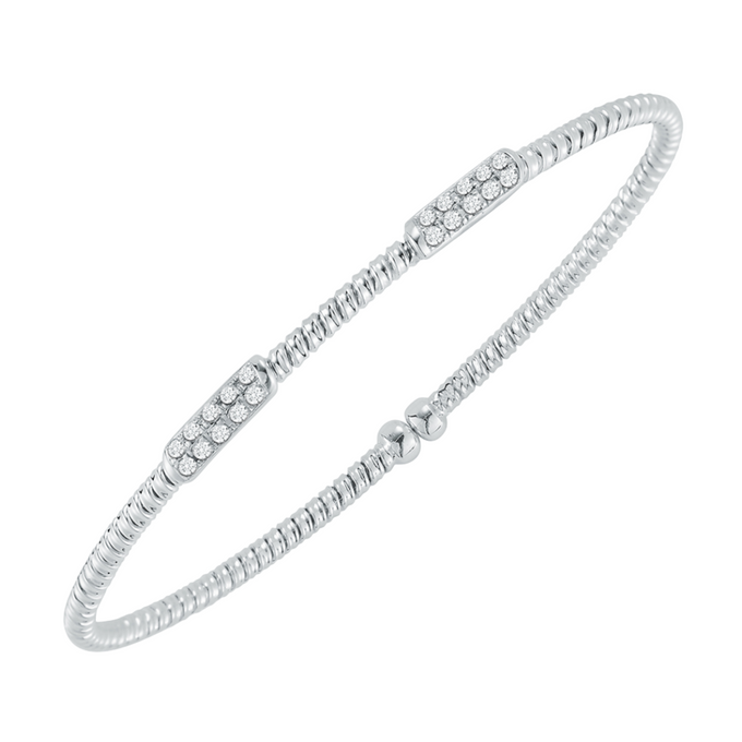 Two Diamond Bar Station 18k White Gold Cuff Bracelet