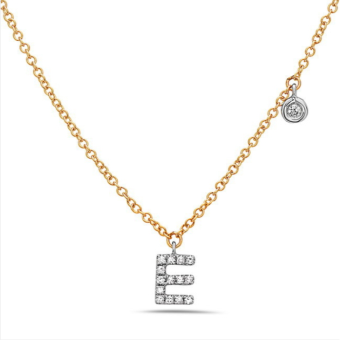 Two Tone 14 Karat Diamond Initial "E" Pendant 0.07ctw