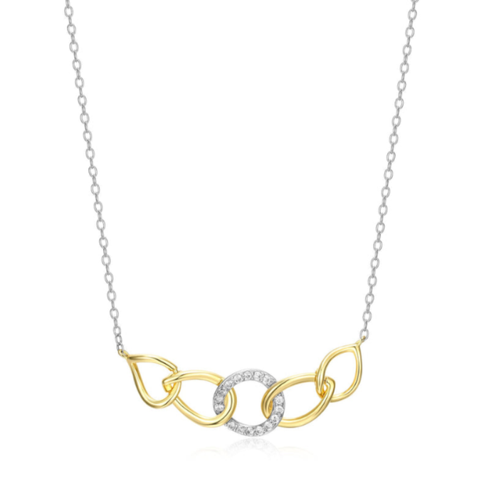 Two Tone Sterling Silver Oval Link Pendant with Cubic Zirconias