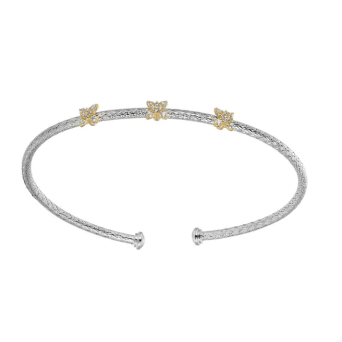 Two Tone Sterling Silver Rhodium/Gold Plated CZ Flower Cuff Bracelet