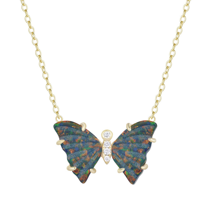 Yellow Sterling Silver Gold Plated Stationary Lab Created Opal/Crystal Butterfly Necklace
