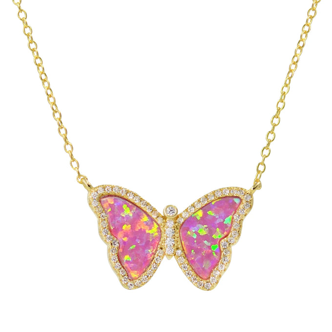 Yellow Sterling Silver Gold Plated Stationary Lab Created Opal/Crystal Butterfly Necklace